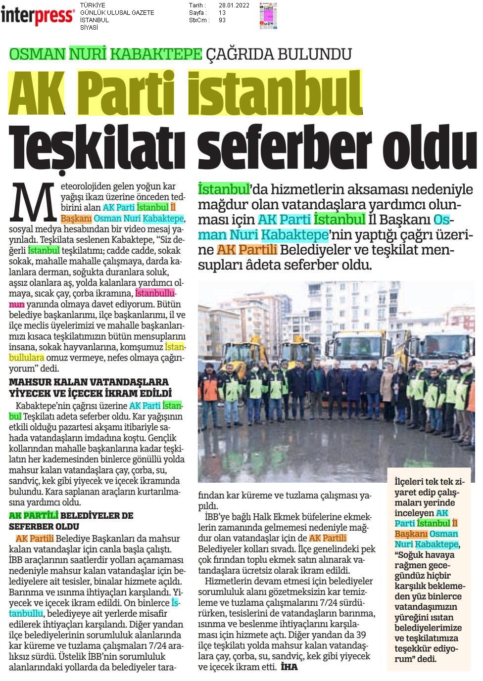 İstanbulun yükünü AK Partili Belediyeler omuzladı- Yeni Akit