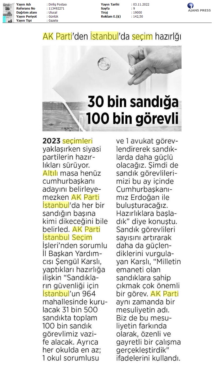 Seçimlerde 100 Bin Kişi Görevlendirilecek- Diriliş Postası